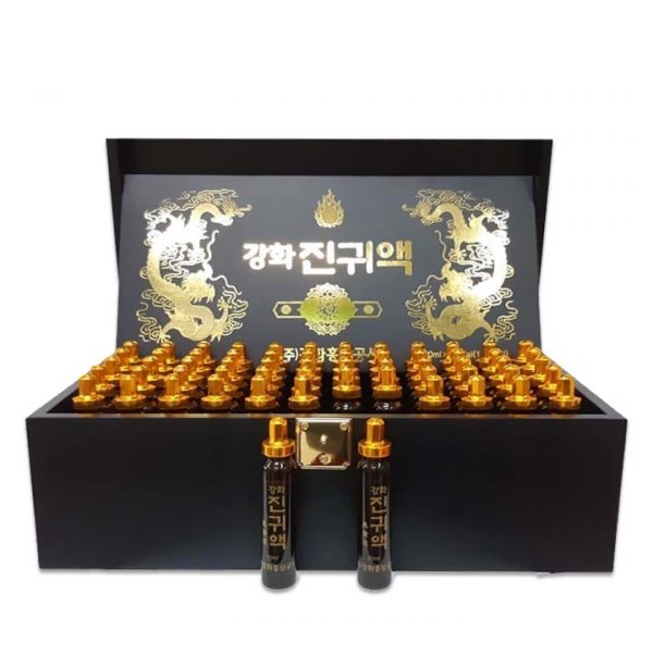 Tinh Chất Đông Trùng Hạ Thảo KANGHWA Hàn Quốc hộp 60 ống chiết xuất từ các loại thảo dược quý hiếm. Thành phần rắn 30% bao gồm: táo đỏ cô đặc, đường fructo-oligosaccharides, đường mạch nha iso-maltooligasaccharides, đường mía, chiết xuất Angelica cô đặc (bạch chỉ Hàn Quốc), nhung hươu, nấm linh chi, địa hoàng, quả sơn thù du, câu kỷ tử, trầm hương, cam thảo, bột maca, cát cánh, củ dong riềng, ngũ vị tử bắc, quế, nước tinh khiết, L-arginine, tật lệ, L-menthol, Maltitol syrup, Jujube Extract, Sodiumbenzotate, Stevioside, Nicotinic acid, Vitamin B6 hydrochloride ,Sodium citrate, Xanthan gum, Vitamin B1 Dilauylsulfate, Citric acid, Glycine.